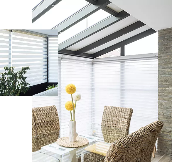 Installés au-dessus ou sous la toiture vitrée, les stores de toiture pour vérandas maîtrisent efficacement la chaleur et l’éblouissement.