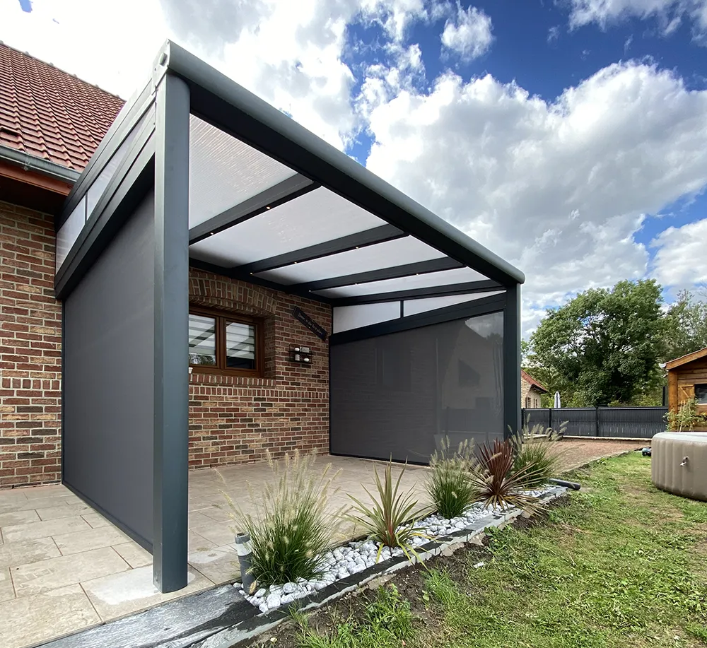 Le store ZIP se distingue par sa résistance légendaire au vent, capable de supporter des rafales importantes grâce à son système de maintien latéral continu. Contrairement au modèle classique où la toile peut flotter légèrement, le ZIP agit comme une véritable paroi hermétique, bloquant non seulement le rayonnement solaire mais aussi les insectes et les courants d’air. C’est l’équipement privilégié pour les zones exposées ou pour fermer partiellement une structure de terrasse sans sacrifier la visibilité vers l’extérieur.
